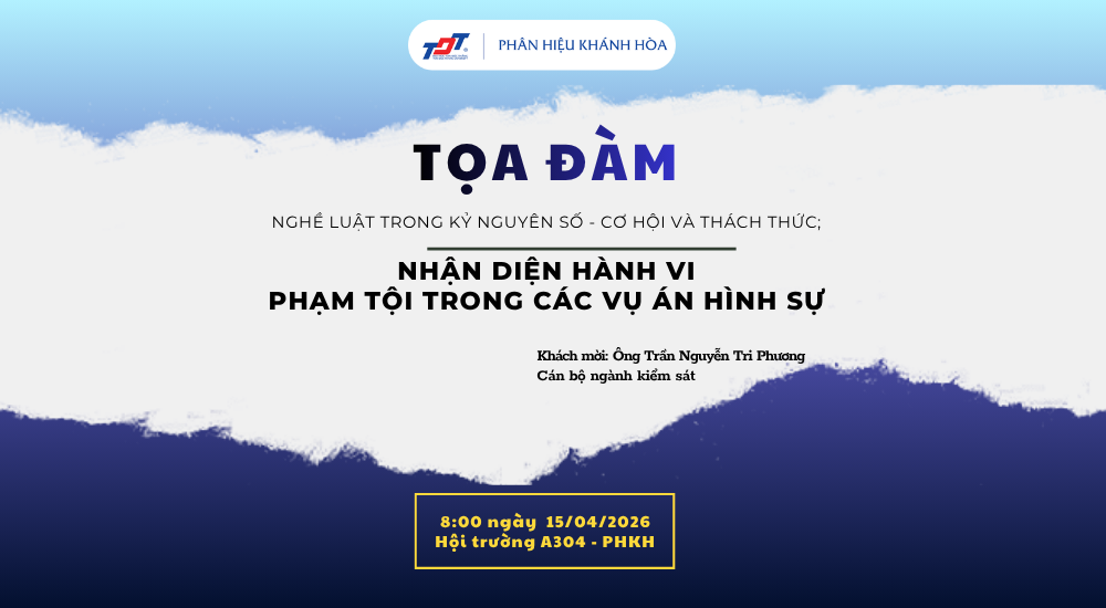 Trang chủ Tuyển sinh trình độ thạc sĩ đợt 1 năm 2026 Thông tin tuyển sinh đại học năm 2026 Tin tức TDTU Phân hiệu Khánh Hòa tổ chức thành công Hội thi nhảy Flashmob chào mừng Tháng Thanh niên Sự kiện | 10/04/2026 Nằm trong chuỗi các hoạt động sôi nổi kỷ niệm ngày thành lập Đoàn Thanh niên Cộng sản Hồ Chí Minh, vừa qua, Đoàn Thanh niên Phân hiệu Trường Đại học Tôn Đức Thắng (TDTU) tại tỉnh Khánh Hòa đã tổ chức thành công Hội thi nhảy Flashmob năm 2026. Trường Đại học Tôn Đức Thắng tổ chức chuyên đề chăm sóc sức khỏe dành cho giảng viên, sinh viên Tin tức | 09/04/2026 Trường Đại học Tôn Đức Thắng phát động cuộc thi sáng tạo “TDTU Vibe Coding” mở rộng năm 2026 Tin tức | 04/04/2026 Trường Đại học Tôn Đức Thắng tổ chức Hội thảo quốc tế lần thứ 2 về Tính toán thông minh trong Kỹ thuật và Khoa học Tin tức | 04/04/2026 TIN KHÁC Sự kiện 24 04 Cuộc thi vẽ tranh tuyên truyền tác hại của bệnh sốt xuất huyết Ngày 24/4/2026 (thứ Sáu) Sảnh A, Phân hiệu Trường Đại học Tôn Đức Thắng tại tỉnh Khánh Hòa 18 04 Giải Bóng đá giao lưu kết nối đối tác Ngày 18/4/2026 (thứ Bảy) Sân bóng đá, Phân hiệu Trường Đại học Tôn Đức Thắng tại tỉnh Khánh Hòa 15 04 Tọa đàm “Nghề Luật trong kỷ nguyên số - cơ hội và thách thức; Nhận diện hành vi phạm tội trong các vụ án hình sự” 8:00 ngày 15/04/2026 (thứ Tư) Hội trường A304, Phân hiệu Trường Đại học Tôn Đức Thắng tại tỉnh Khánh Hòa SỰ KIỆN KHÁC Danh tiếng của TDTU TDTU xếp thứ 601-800 thế giới theo THE và thứ 684 thế giới theo QS. Chương trình học Chương trình đào tạo được xây dựng theo tiêu chuẩn kiểm định quốc tế: AUN-QA, FIBAA, ASIIN,... Học tập & giảng dạy Cơ sở vật chất phục vụ học tập tại TDTU đạt tiêu chuẩn quốc tế 5 sao. Thể thao & rèn luyện thể chất Sinh viên thỏa sức rèn luyện thể chất với nhiều môn thể thao tùy chọn. Ký túc xá Sinh viên lưu trú tại ký túc xá đầy đủ tiện nghi ngay trong khuôn viên trường. Thư viện TDTU INSPiRE Library là thư viện đúng chuẩn quốc tế và hiện đại nhất ở Việt Nam. Tại sao chọn học tại Phân hiệu Khánh Hòa? Đăng nhập vào đây để Phân hiệu Khánh Hòa là lựa chọn đầu tiên của bạn! Tham quan Phân hiệu Khánh Hòa 3D