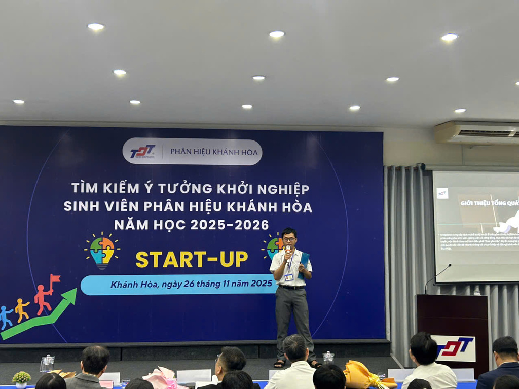 Ngày 03/12/2025, Phân hiệu Trường Đại học Tôn Đức Thắng tại tỉnh Khánh Hòa tổ chức vòng Chung kết cuộc thi “Tìm kiếm ý tưởng khởi nghiệp sinh viên Phân hiệu Khánh Hòa” năm học 2025–2026, với sự tham dự của các đội thi xuất sắc được tuyển chọn từ vòng loại.