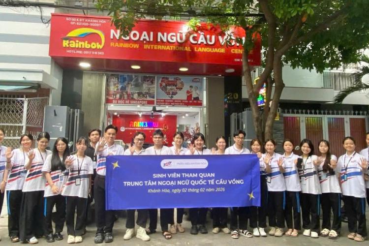 Ngày 02/02/2026, sinh viên Phân hiệu Khánh Hòa đã tham gia chương trình tham quan, kiến tập và giao lưu định hướng nghề nghiệp tại Trung tâm Ngoại ngữ Cầu Vồng.