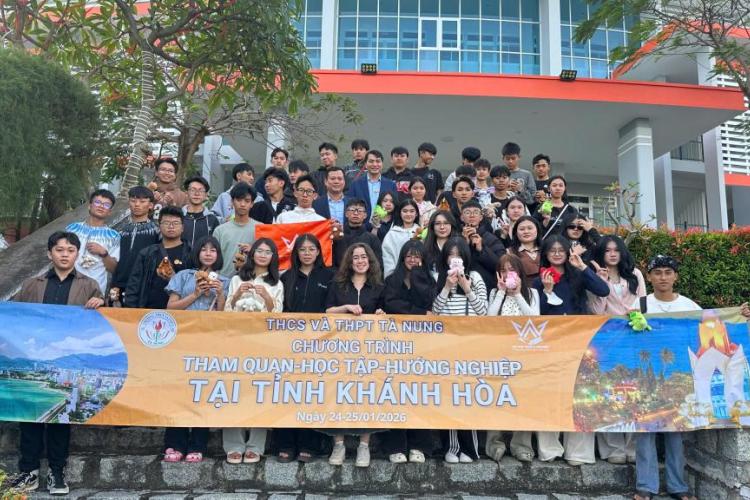 Ngày 24/01/2026, Trường Đại học Tôn Đức Thắng – Phân hiệu Khánh Hòa đã đón tiếp đoàn thầy cô và học sinh Trường THCS–THPT Tà Nung (tỉnh Lâm Đồng) đến tham quan, trải nghiệm môi trường học tập đại học.