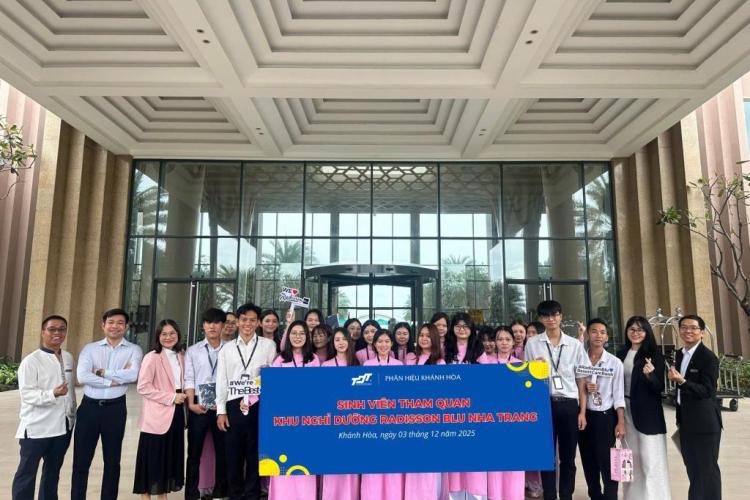 Sáng 03/12/2025, Phân hiệu Trường Đại học Tôn Đức Thắng tại tỉnh Khánh Hòa tổ chức chương trình tham quan – kiến tập dành cho sinh viên ngành Quản trị kinh doanh, chuyên ngành Nhà hàng – Khách sạn tại Khu nghỉ dưỡng Radisson Blu Resort Cam Ranh.