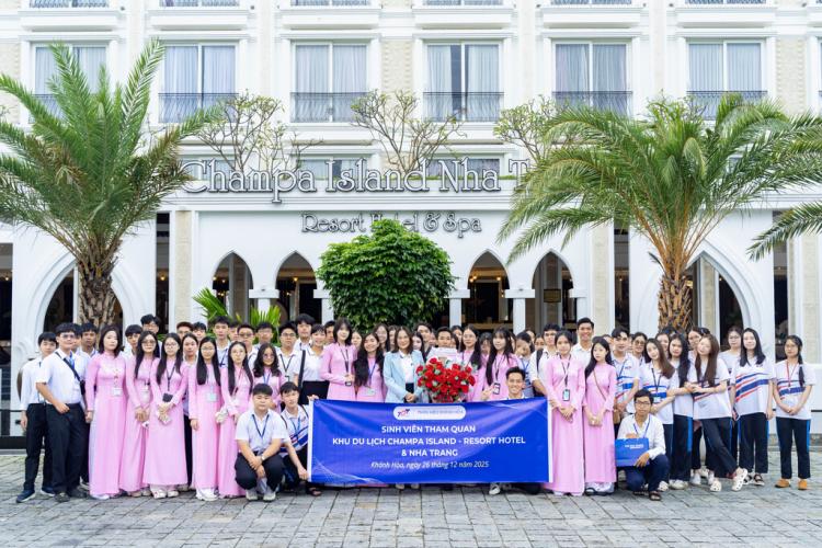 Ngày 26/12/2025, sinh viên Phân hiệu Khánh Hòa đã tham gia chương trình tham quan kiến tập thực tế tại Khu du lịch Champa Island – Resort Hotel & Spa, một trong những khu nghỉ dưỡng quy mô lớn nằm ngay trung tâm thành phố du lịch Nha Trang, được phát triển theo mô hình “ốc đảo xanh” giữa lòng đô thị.